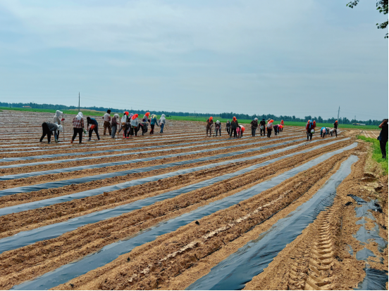 随着夏日的热浪席卷而来,长胜镇的田野间一派热火朝天的繁忙景象。近日,在白土梁子村千亩向日葵种植基地里,农户们分工协作,配合默契,有人铺设地膜,有人专注播种,有人覆土压实。劳作声与欢笑声交织,共同勾勒出一幅充满希望的夏日农耕画卷,每一个忙碌的身影,都在为即将到来的丰收蓄力。