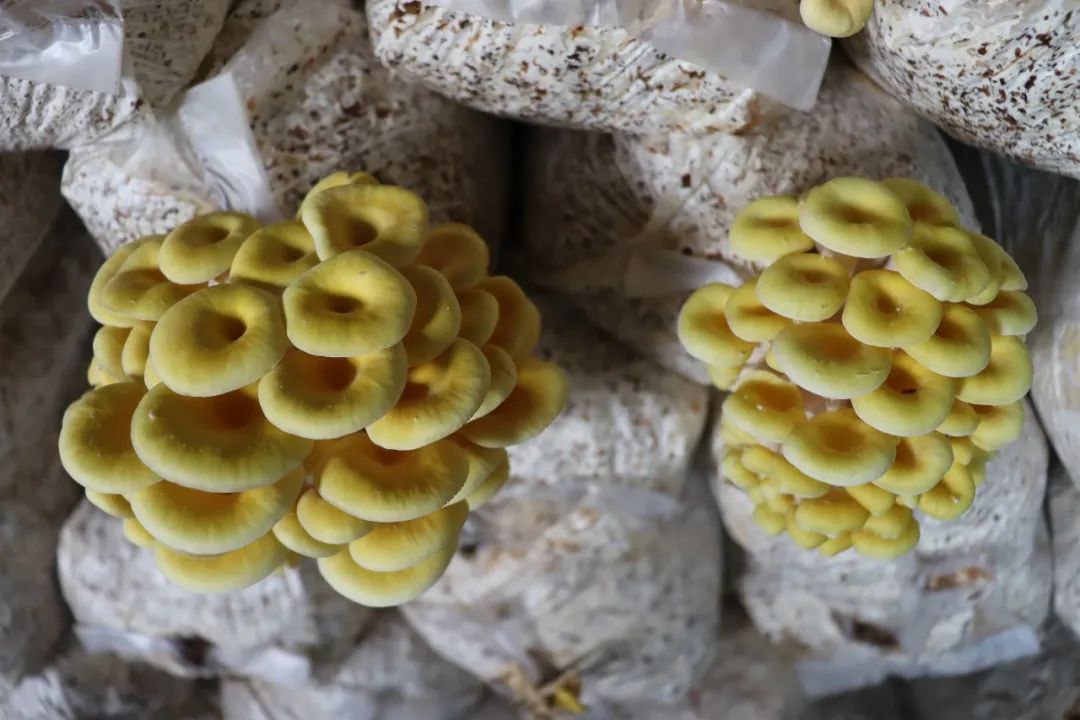 除了黑木耳和赤松茸,金厂沟梁镇还积极探索产业多元化发展。例如,在部分闲置的肉牛养殖小区内种植滑子菇、猴头菇、榆黄蘑等食用菌。目前,3 万棒滑子菇、2.5 万棒猴头菇、2 万棒榆黄蘑菌棒已在养殖小区内扎根生长,预计将带来可观的经济效益。