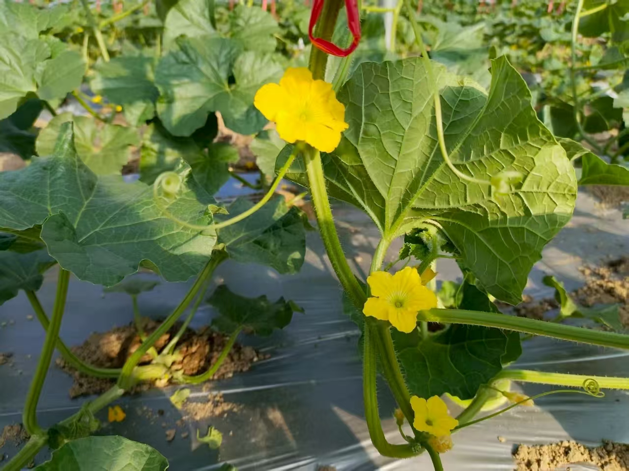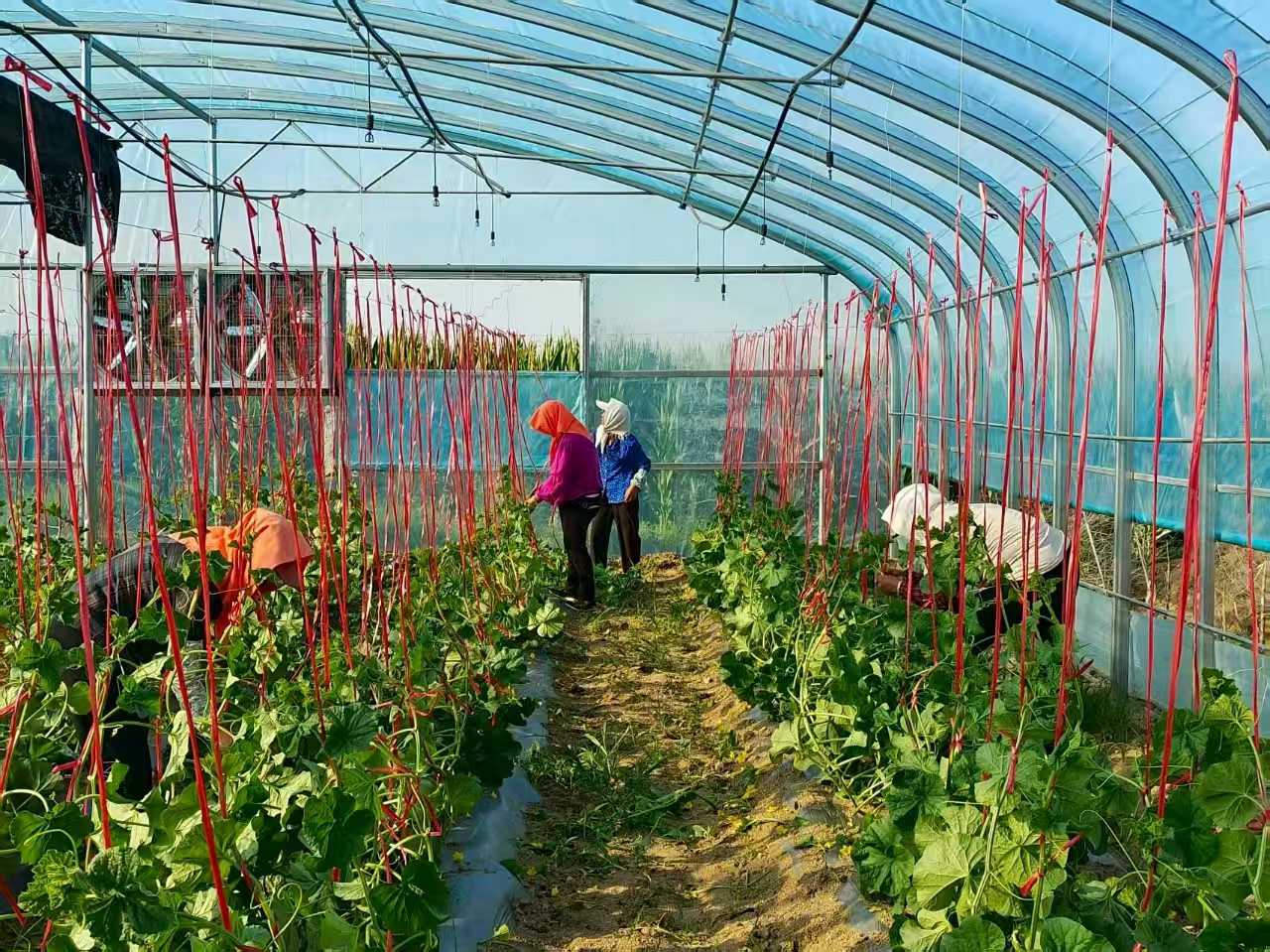 村民们俯身于垄沟之间,指尖灵巧地为瓜苗绑蔓、整枝、疏花,每一个娴熟而专注的动作,都凝聚着农人对土地的深厚情谊和对丰收的殷切期盼。