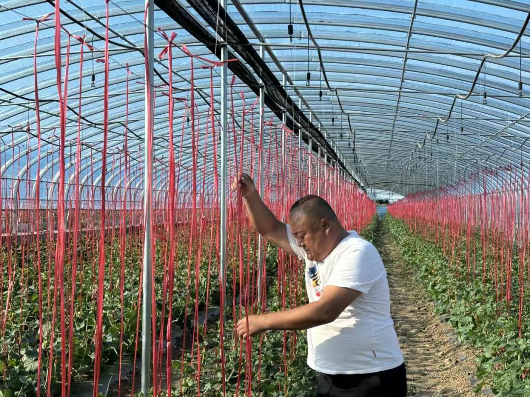 这抹“甜”,源自于一位深深扎根乡土的产业带头人——白塔子村党支部书记翟亚军。这位土生土长的农家子弟,怀揣着让乡亲们过上好日子的质朴初心,带领村民将闲置的草莓育苗大棚转型为金丝蜜瓜种植示范基地,通过引进优质蜜瓜品种,推广“错峰种植+水肥一体化+绿色防控”栽培技术,使蜜瓜在十月金秋错峰上市,有效避开市场供应高峰。