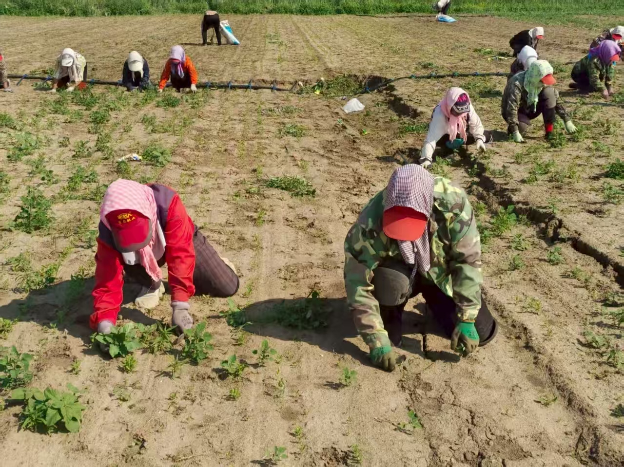 如今,每亩年均1300元的租金,不仅为村民带来了稳定的“资产性收入”,还催生了“家门口就业圈”。从春季整地除草到夏季田间管理,再到秋季采收晾晒,基地全年用工不断,高峰期每日可吸纳百余名村民同时作业,日均工资达130元,许多原本在家赋闲的留守妇女和年长村民真正实现了在家门口打工增收。