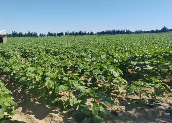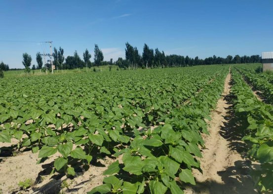 作为这片田野的“主角”,“谷丰90”食用型杂交向日葵正以蓬勃生命力展现“优等生”特质。该品种高产、适宜密植,有耐旱性,非常契合本地的气候和土壤条件,生长周期仅100天左右。