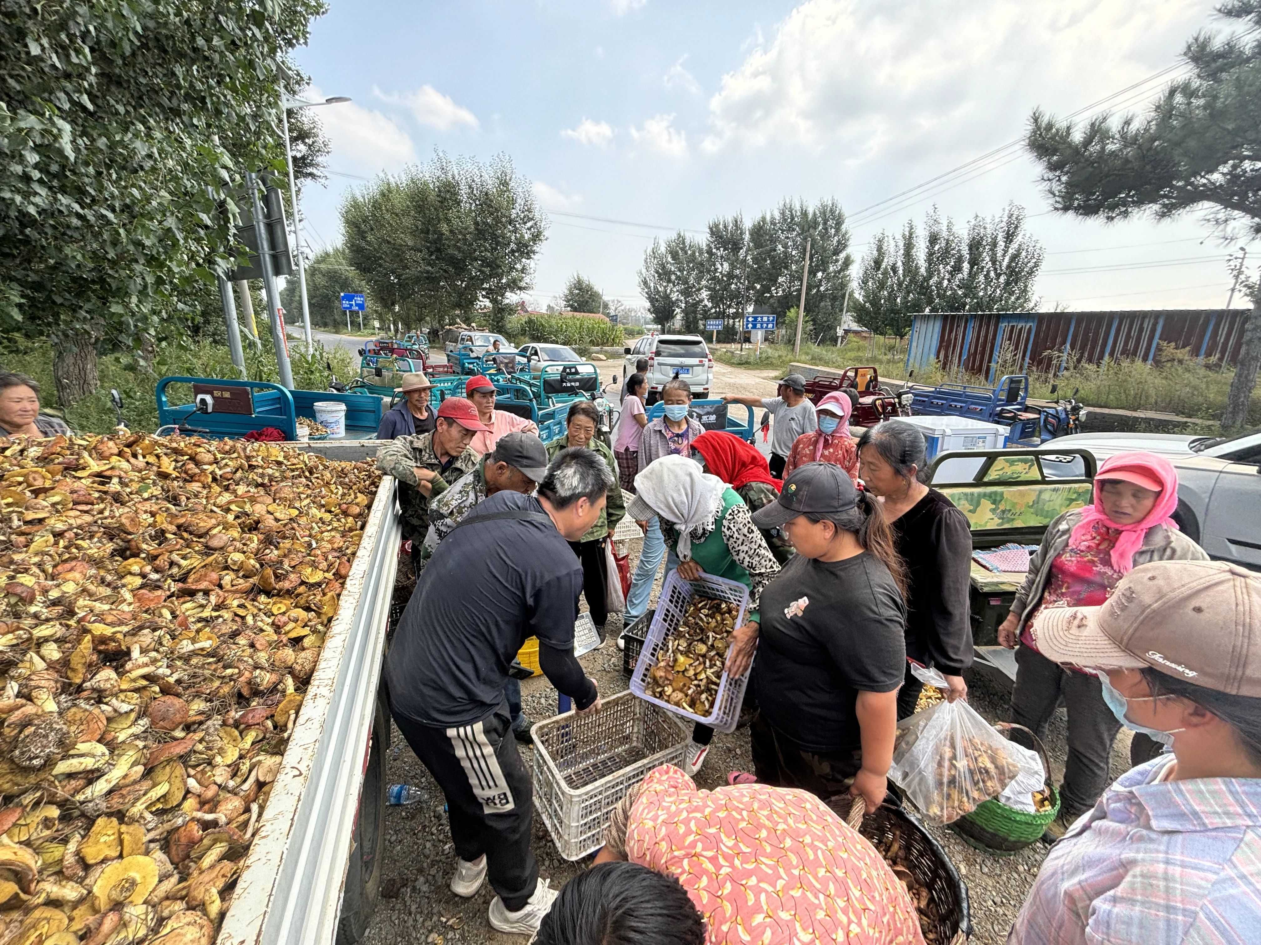 每逢夏季雨霁,晨雾还未散尽时,山林间便成了野生菌的“乐园”:红蘑、松蘑、小灰蘑、杨树蘑、羊肚蘑争相破土而出,饱满的菌盖上沾着晶莹的晨露,每一寸肌理都透着鲜活的气息。这时节,村民们便挎着竹编小筐,踏着林间湿润的潮气走进山林,在枝叶间穿梭往来,抢抓采菇的“黄金窗口期”——那忙碌的身影缀在翠绿的山林间,恰似一幅灵动的“采菇图”。