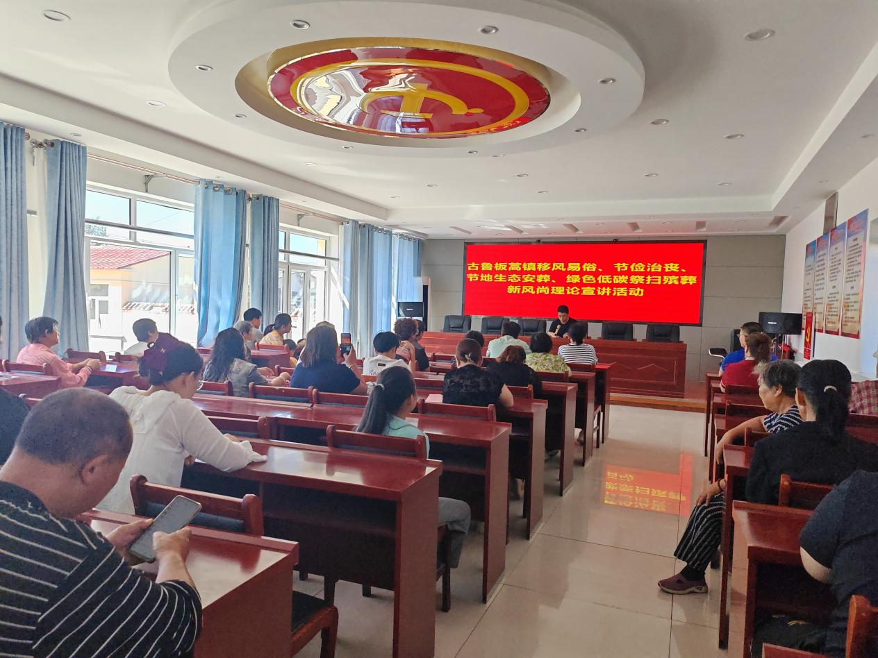 为持续深化农村精神文明建设,破除陈规陋习,培育文明乡风,在国庆、中秋“双节”前夕,古鲁板蒿镇开展了以“倡导文明节俭治丧、节地生态安葬、绿色低碳祭扫”为主题的移风易俗宣传活动,动员广大干部群众共同营造绿色、低碳、安全的文明祭祀新风尚。