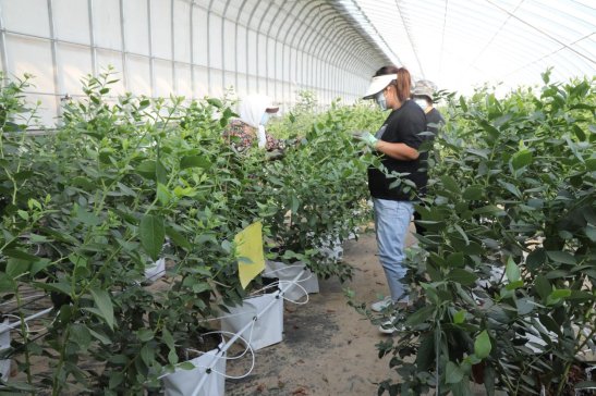 蓝莓基地负责人尤孝刚介绍:“现阶段蓝莓处于开花期,用工较少。等到2月份果实成熟,每天用工需求将达到100人左右。工酬方面,每日最低200元,熟练工每天可拿到200-300元。”
