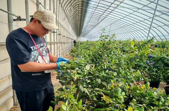 这片占地200亩的智慧农业示范园,总投资2000余万元,建有35栋现代化暖棚,种植了3万余株蓝莓树。园区采用先进的智慧农业管理系统,精准调控水肥、温度、湿度和光照,为蓝莓生长提供了最佳条件。加上北方昼夜温差大的气候特点,这里的蓝莓果实饱满、甜度高,每株蓝莓树可产优质蓝莓6至7斤,深受市场青睐。