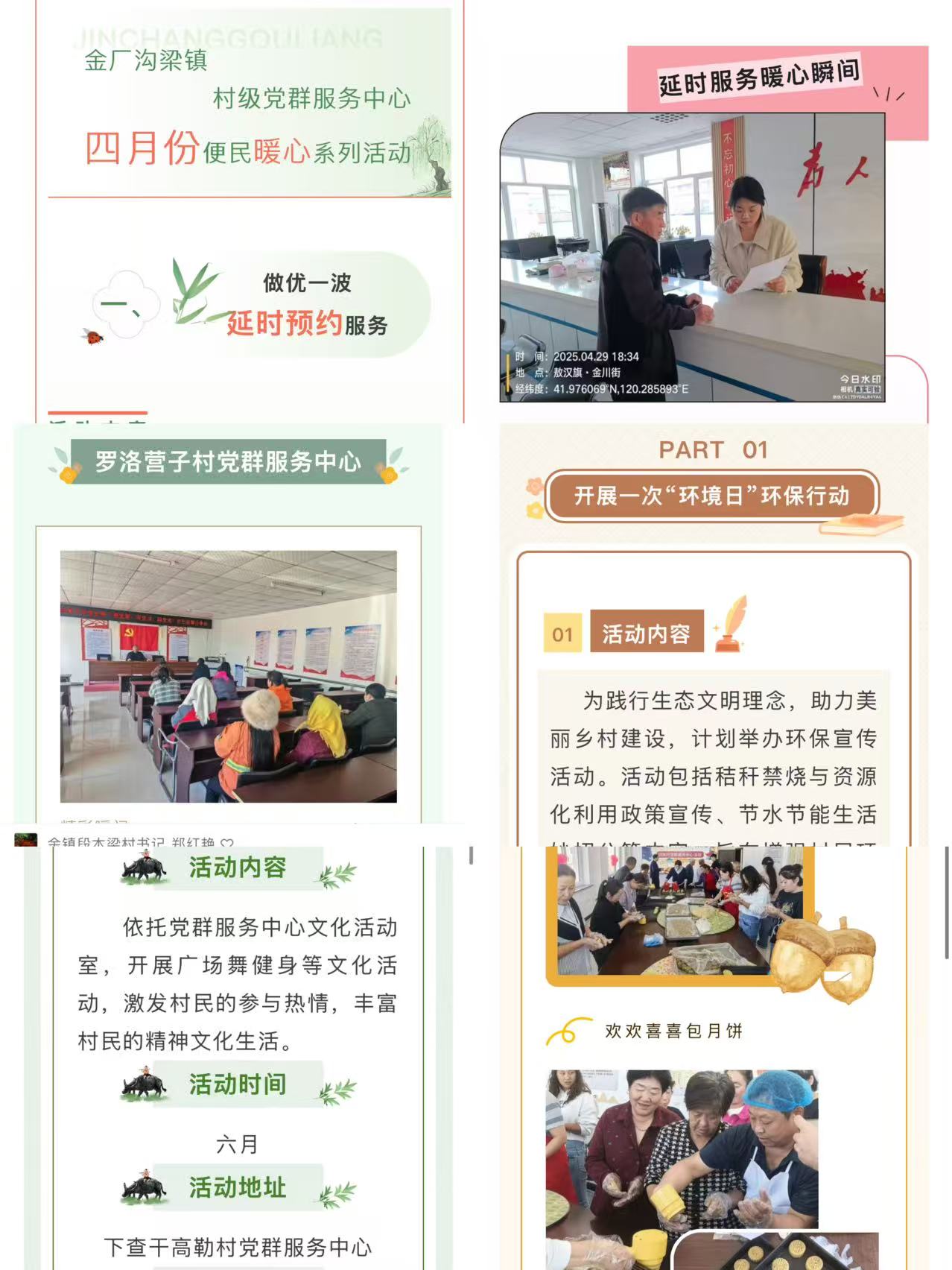 以精准化、常态化、多元化服务为抓手,金厂沟梁镇持续优化党群服务中心服务供给,不断提升群众黏性和满意度。在常态化服务方面,推行“月度活动清单+季度主题策划”机制,提前制定全年50余项特色活动计划,确保“月月有活动、村村有特色”。每月初通过镇公众号、村民微信群、村内公告栏等渠道发布“本月活动清单”,明确活动主题、时间、地点和参与方式,方便群众提前安排时间;月末开展“上月活动回顾”,通过图文展示、群众座谈、线上问卷等形式总结活动成效、收集意见建议,及时优化活动内容和形式,目前已累计开展“民心培育活动”8期45场次,群众参与度持续提升。