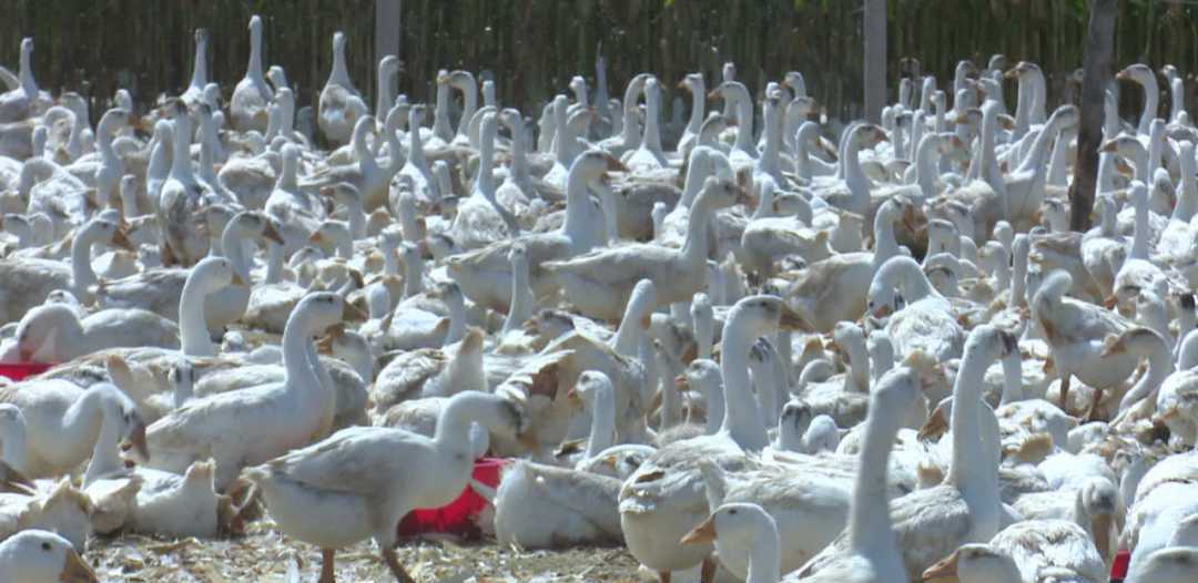 近日,来到木头营子乡沙根村关敏的小院内,日光温棚环境宽敞清洁,五千余只大鹅正在棚内整齐地进食,给平静的小院增添了勃勃生机。