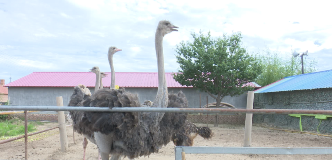 走进木头营子乡前井村迟海明的鸵鸟养殖基地,30多只体型健壮、毛色光亮的鸵鸟看到有人到来,瞪着大眼睛、迈着大长腿在围栏内东张西望。黑灰两色相间的成年鸵鸟在场地内玩耍追逐、悠闲散步。
