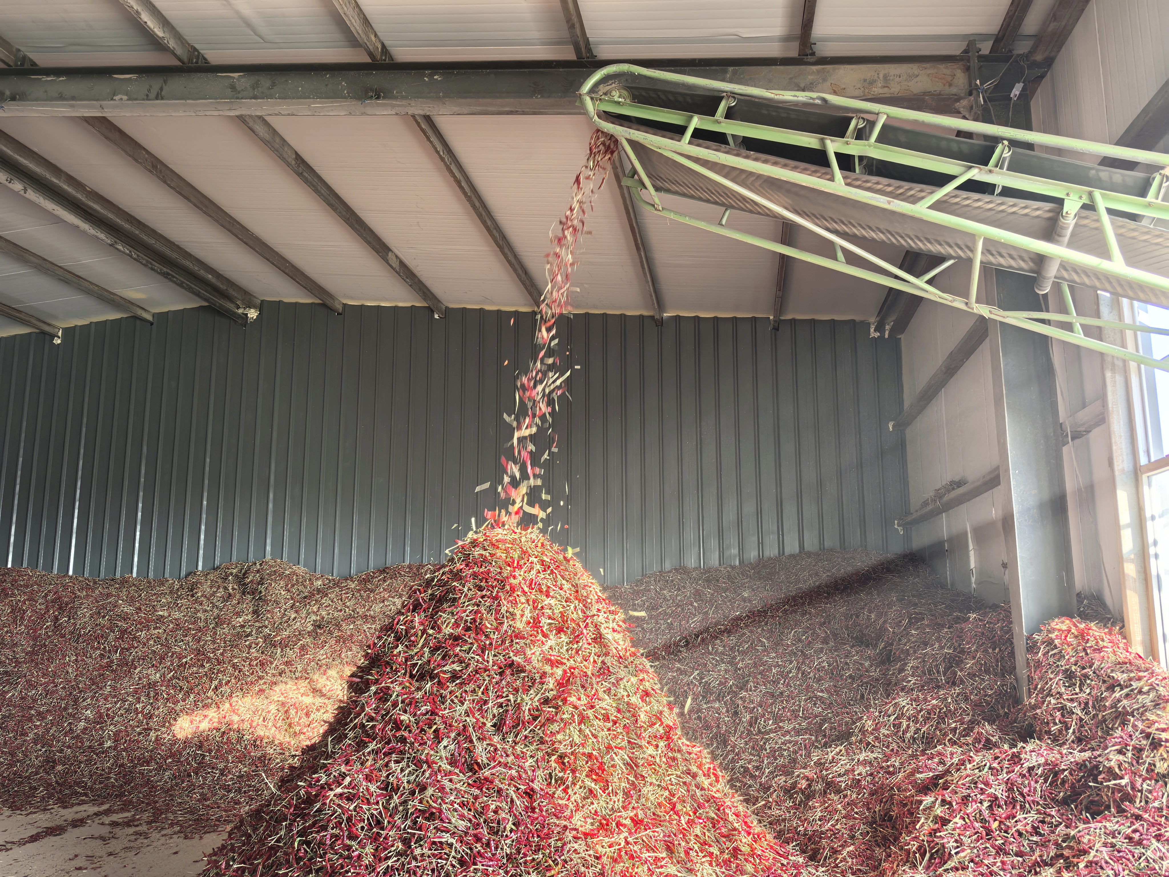 岁末寒冬,黄羊洼镇的辣椒烘干车间里仍跃动着一片火红,朝天椒在传送带上翻滚,除杂、色选、烘干,一道道工序有条不紊地进行着,工人们熟练地操作设备,车间内的机器轰鸣声与辣椒的噼啪声交织成一首丰收的乐章。这批订单将发往四川、贵州等地,成为千家万户餐桌上的美味源泉。