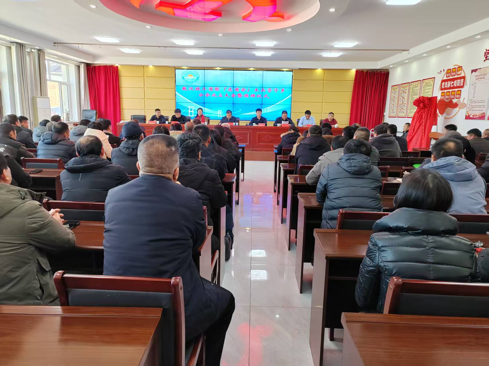 2月3日上午,在庄严的国歌声中,敖汉旗工商联(总商会)木头营子乡分会成立大会隆重召开。旗委常委、统战部部长杨辉坡、旗工商联主席宋艳春、敖汉青商会常务副会长董兆伟、敖汉青商会副会长王文成、敖汉青商会理事王传东、木头营子乡党委书记胥礼、乡长纪浩宇、人大主席祁海龙、木头营子乡民营企业家代表近80人出席了本次大会。