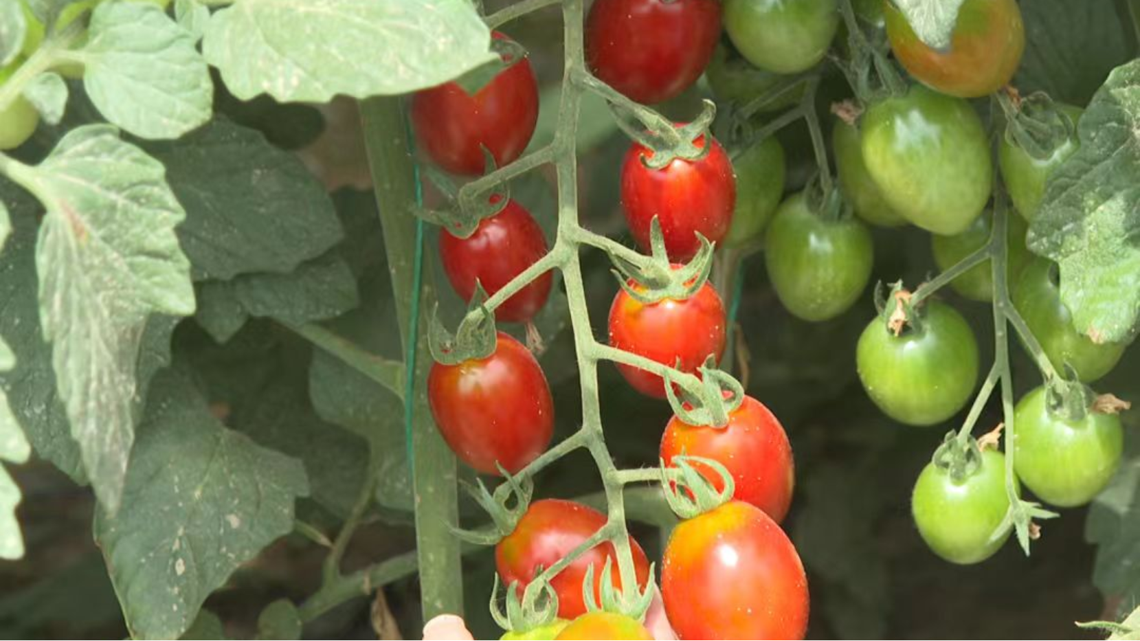 当下正是农事繁忙的好时节。走进敖汉旗木头营子乡青山村新型种养结合产业园,一座座现代化的智能温室大棚整齐排列,掀开棚帘,翠绿的藤蔓间,一颗颗圆润饱满的“玲珑蜜”小番茄像红宝石般探出头来,空气里弥漫着清甜果香。木头营子乡首次试种的“玲珑蜜”小番茄开始进入采收旺季。