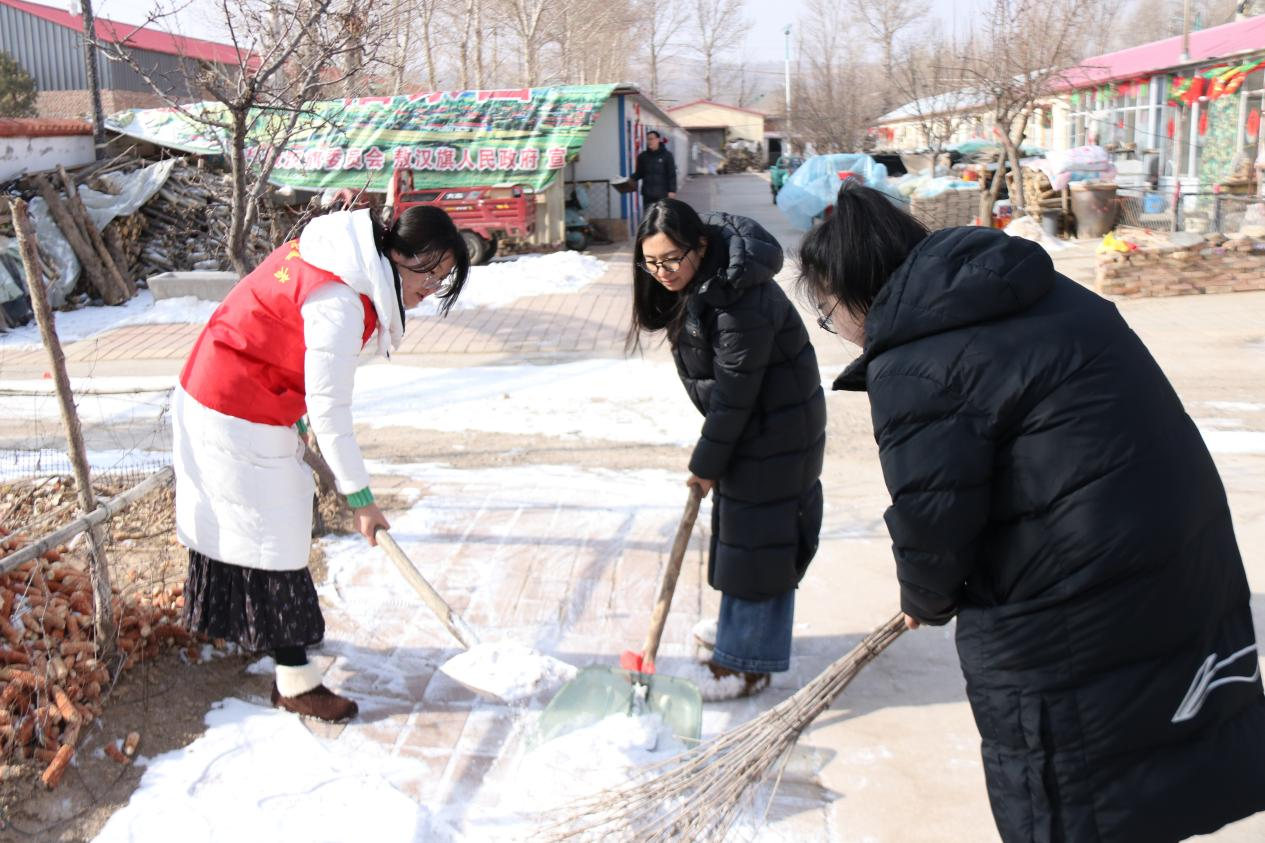 组织带领巾帼志愿者深入萨力巴村幸福大院,开展“情暖夕阳”扫雪除冰志愿服务活动。志愿者们对老人庭院、门前通道、出行路段积雪进行全面清理,同时排查取暖、用电安全隐患,帮助整理内务、拉家常问需求,把党的关怀与妇联温暖送到群众心坎上,通过实际行动践行志愿服务精神。