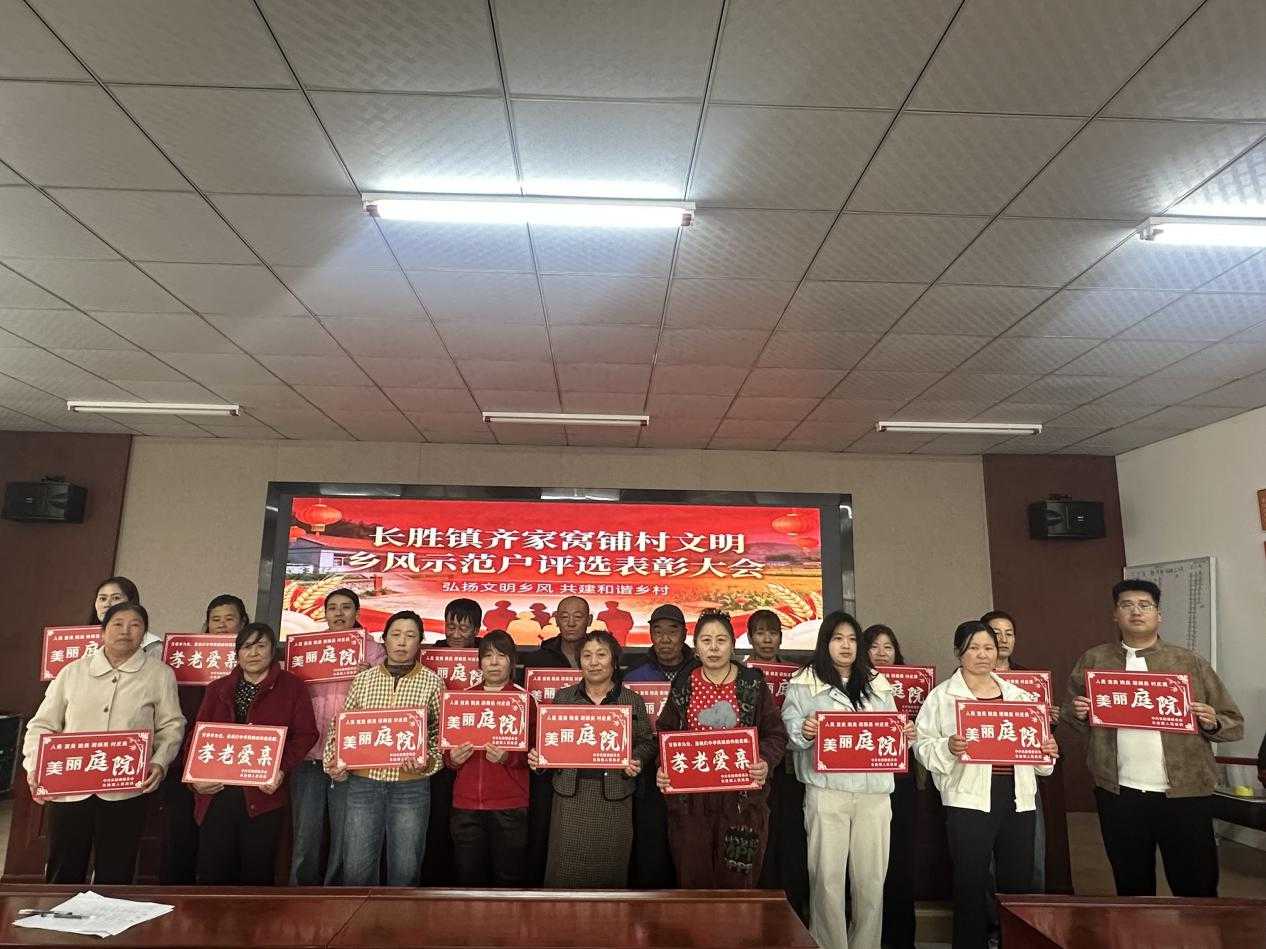 近日,长胜镇齐家窝铺村热闹非凡,一场乡风文明先进典型评选表彰活动在这里隆重举行。经过宣传发动、他荐自荐、入户打分、综合评定等环节的层层筛选,全村最终评选出18户在各个方面表现突出的先进典型家庭,用身边榜样力量引领文明新风,为乡村振兴注入了强大的精神动力。