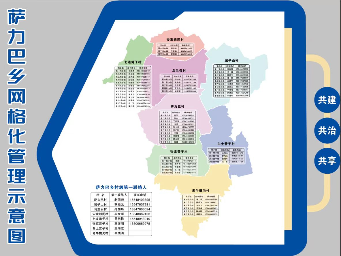 萨力巴乡始终把党的领导贯穿基层治理全过程,推行“党建+网格”模式,将8个行政村划分为112个基础网格,设立56个网格党小组,配备41名网格员、142名联户长,构建“网格党小组+网格员+联户长”机制。推行“四下基层”与“大走访”结合,党员干部下沉一线,变“上访”为“下访”,2026年已累计走访群众66户,收集民生诉求20条,实现“党组织建在网格上、党员聚在网格中、服务落在网格里” 。依托三十二连山红色教育基地,开展党性锤炼活动1次,引导党员在环境整治、矛盾调解中亮身份、作表率,激活基层治理“红色引擎”。