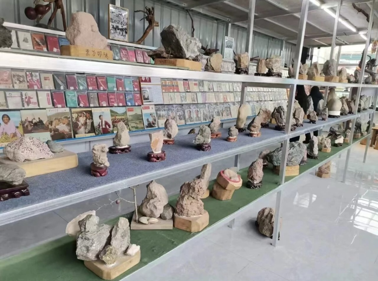 2024年,尹振鹏将自家院落扩建,正式挂牌“汉石博物馆”。馆内陈列着一百八十余件奇石、两千余册红色文献、五千余张各类历史票据,从新石器时代的石斧,到新中国的粮票,一件件堆叠起村庄的记忆。而那几枚“保命石”,被安放在展厅最显眼的位置,旁边工整写着它们的来历与传说。