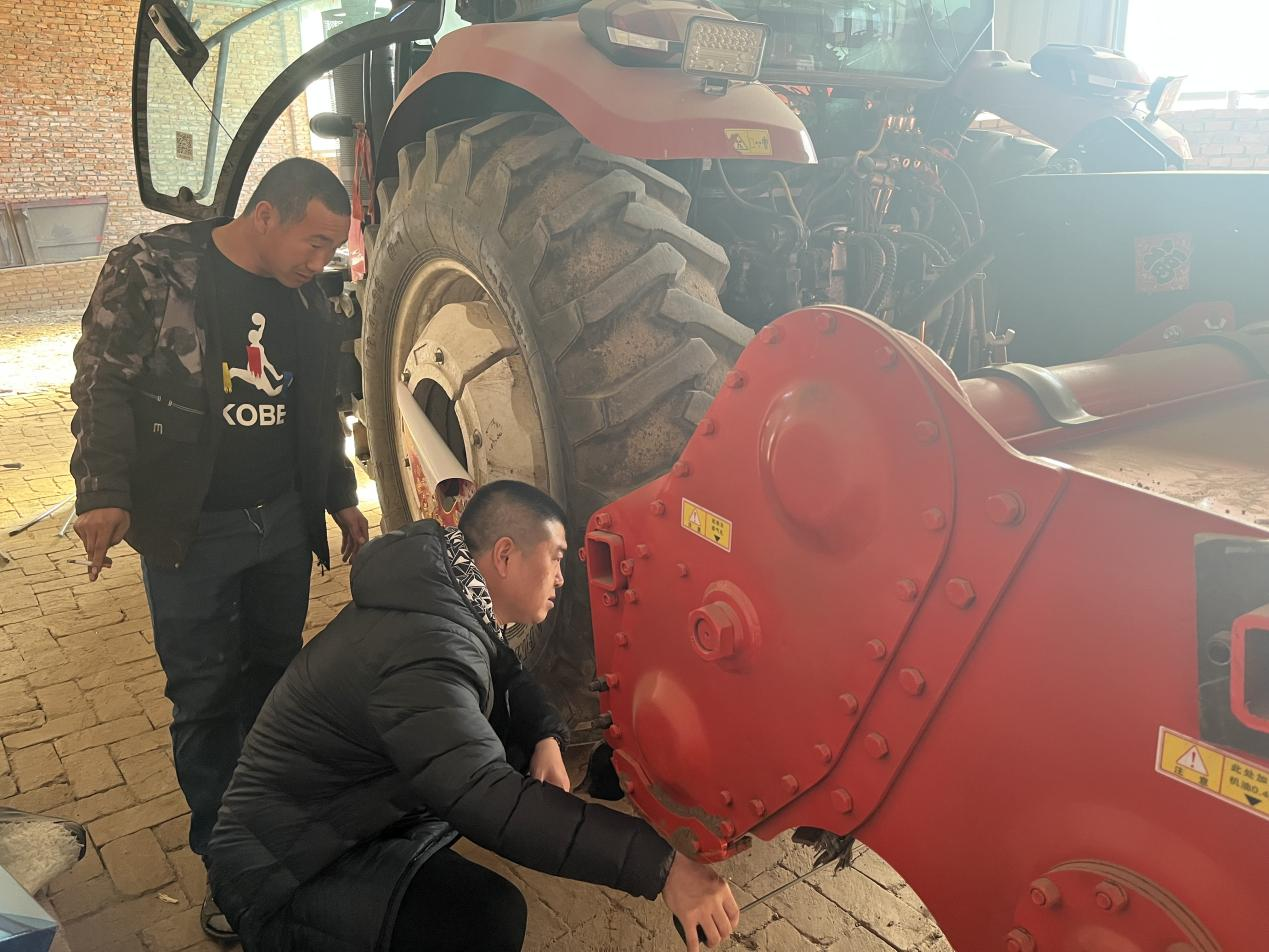 农机技术人员指导农机手检修农机具