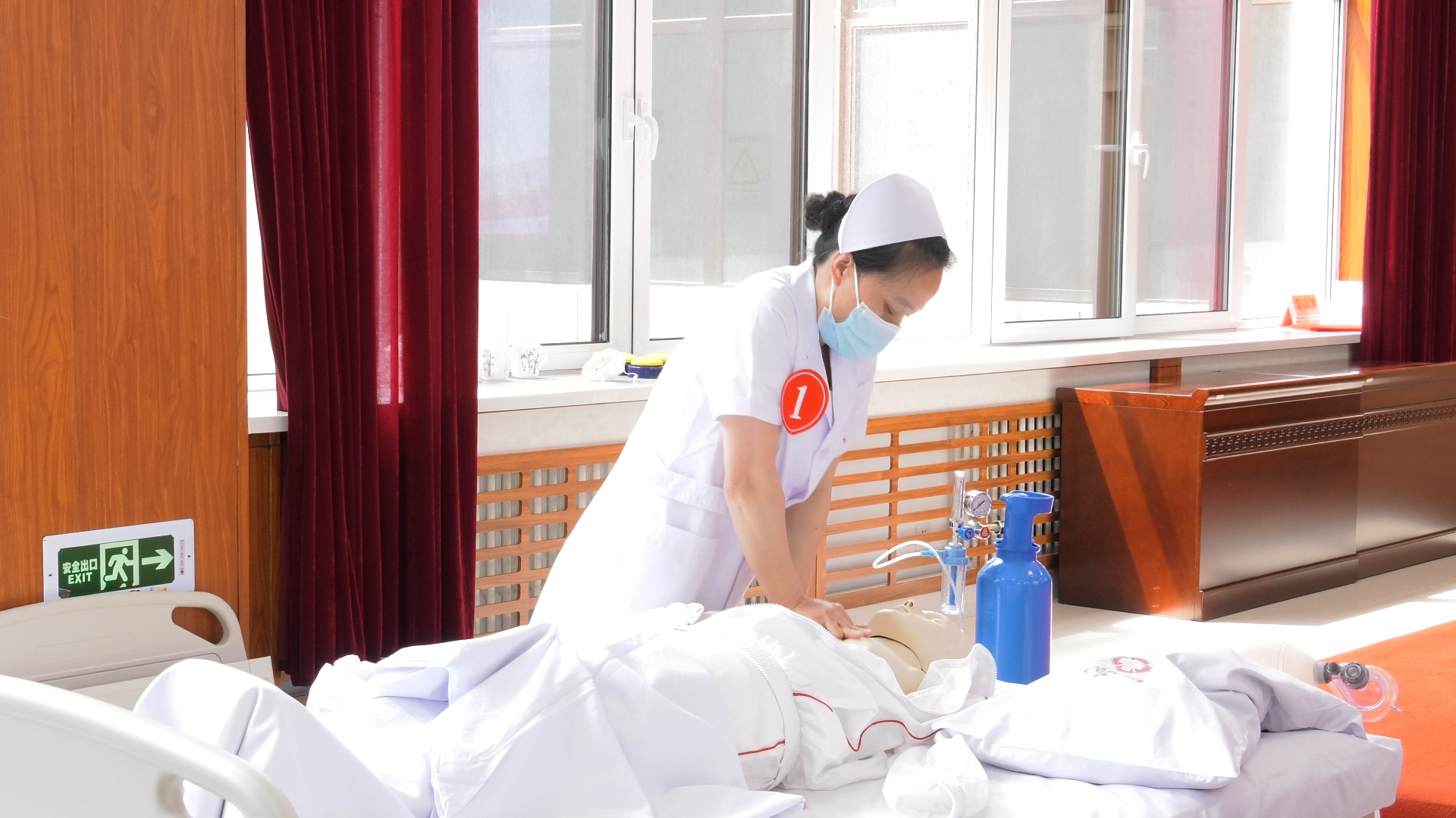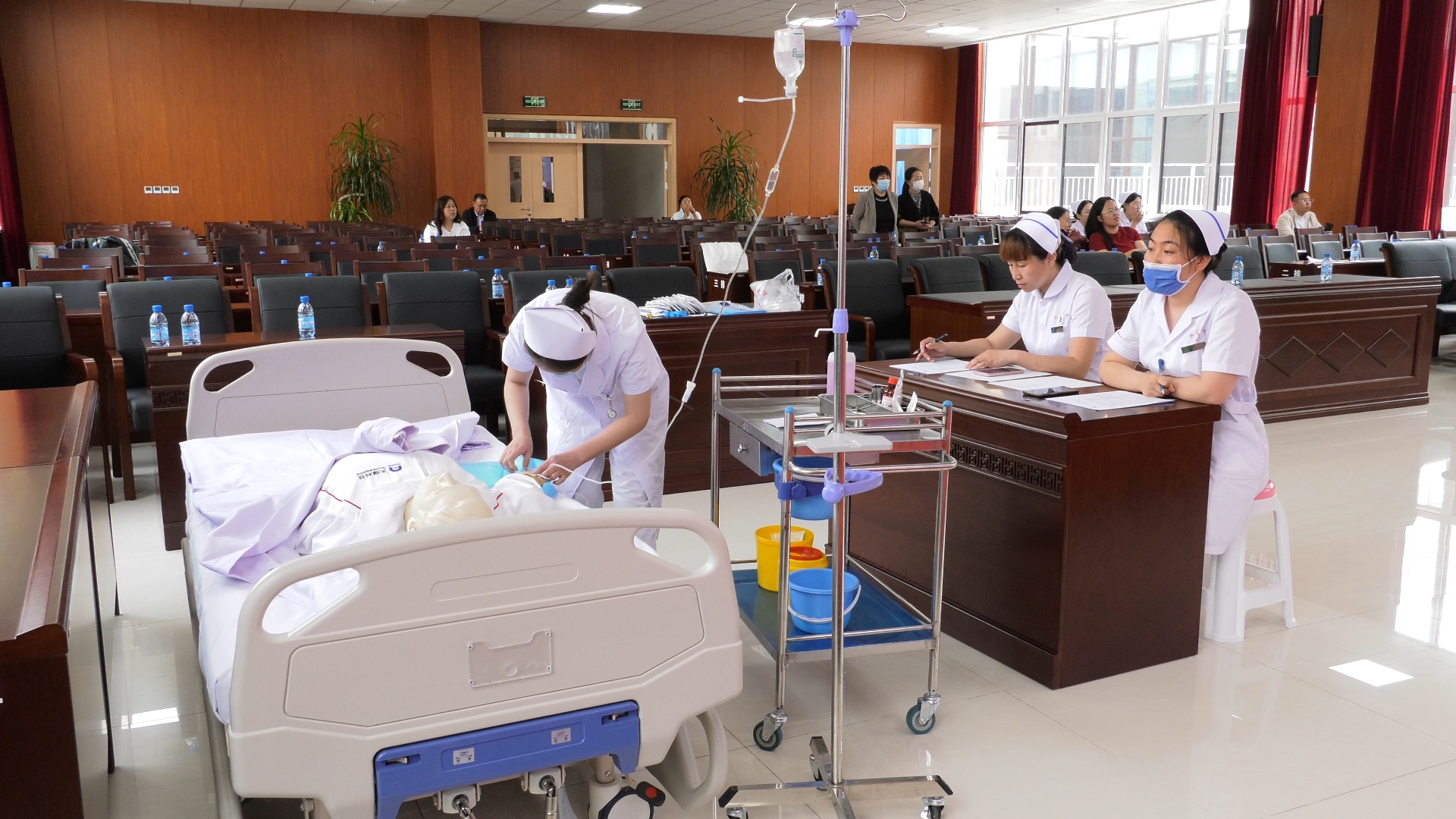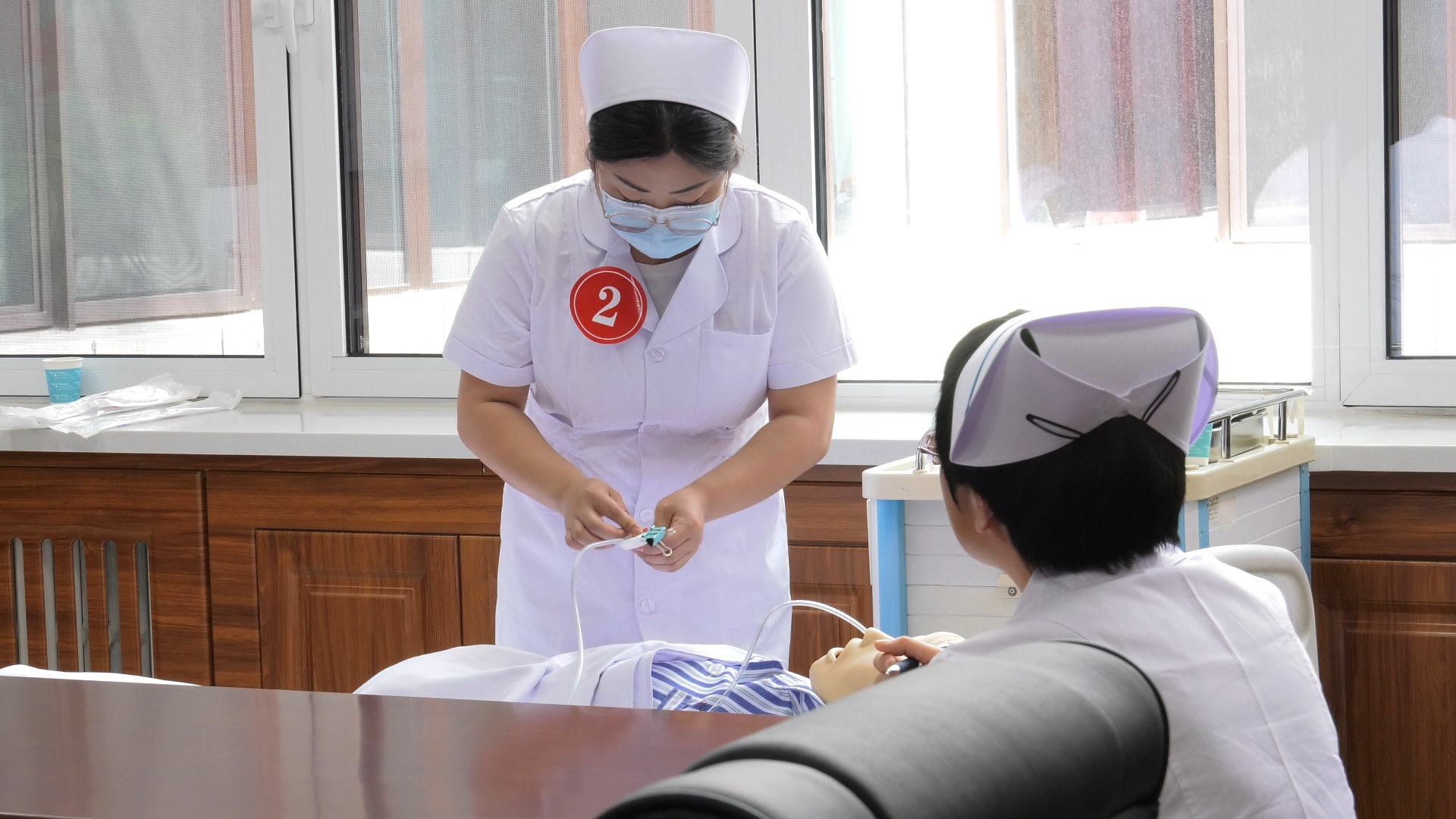 在技能操作考核环节,选手们分组进行技能展示,包括心肺复苏、留置胃管操作等内容。参赛选手们严格按照操作规程,稳准轻快地完成每一项操作,表现出了良好的专业素养和实操能力。