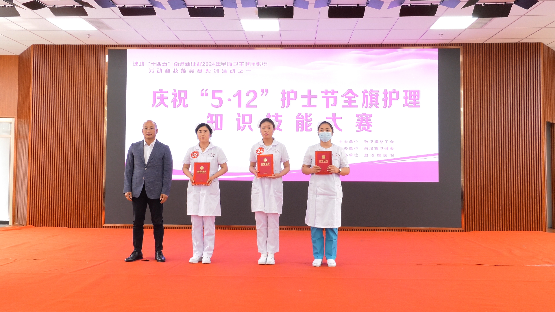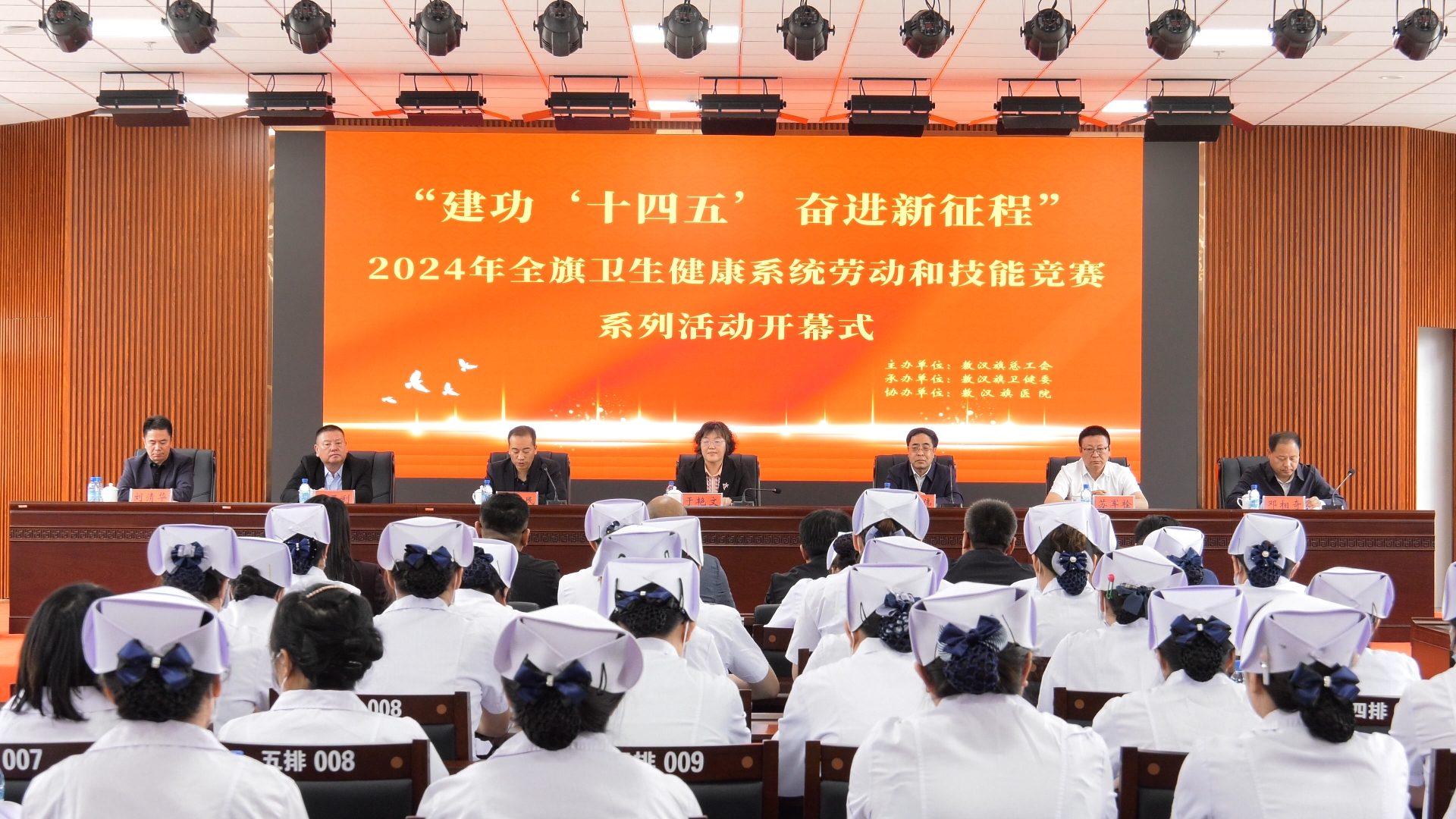 5月10日,在第113个国际护士节即将到来之际,敖汉旗举办“建功‘十四五’• 奋进新征程”2024 年全旗卫生健康系统劳动和技能竞赛系列活动。市总工会副主席于艳文,旗人大常委会副主任、旗总工会主席任伟,旗政府副旗长毕建民出席活动。
