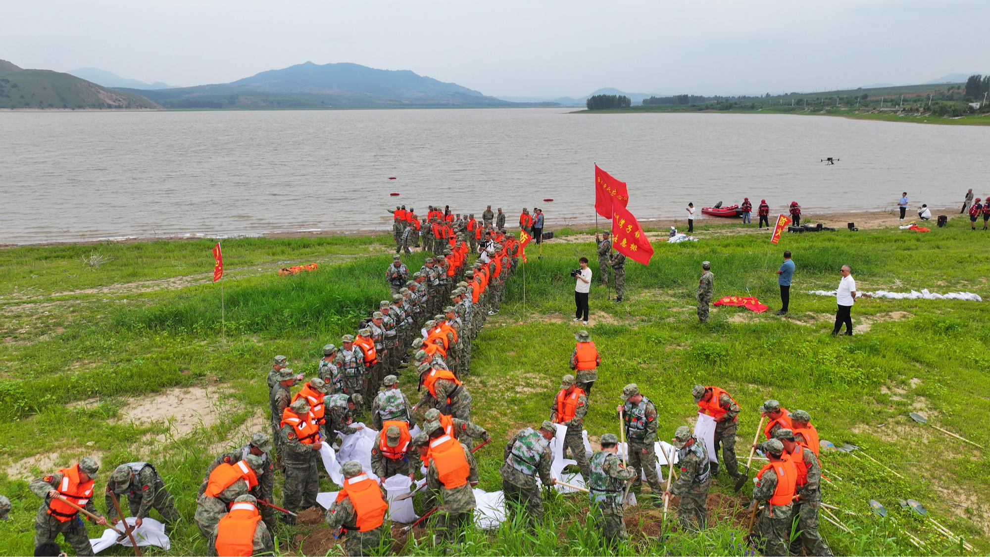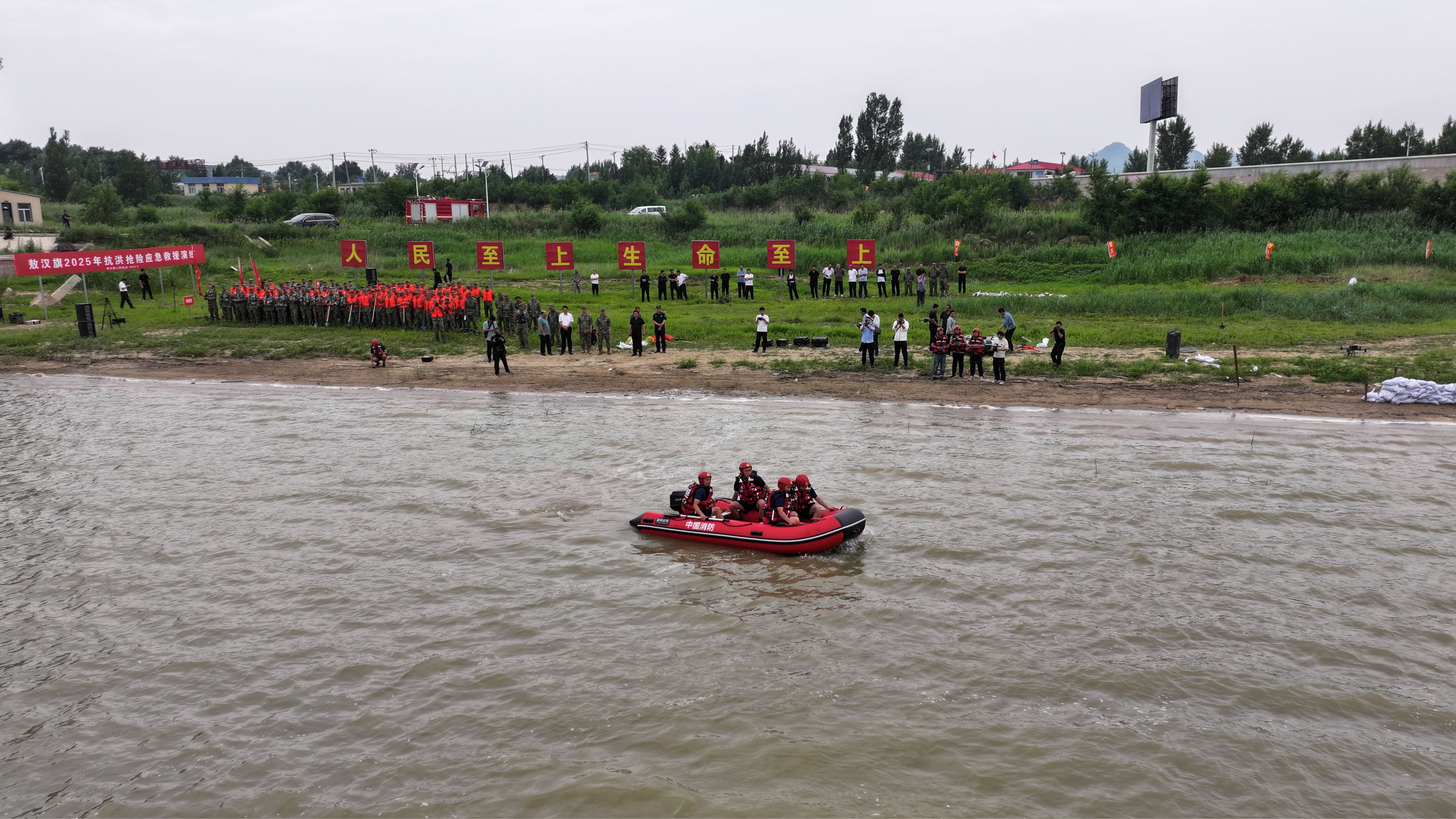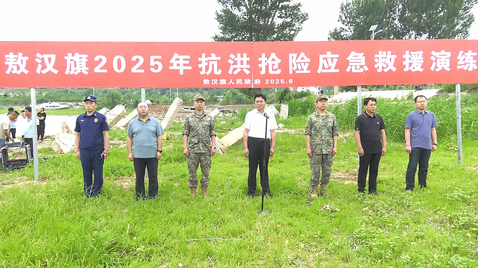 6月27日,由敖汉旗人民政府主办的2025年抗洪抢险应急救援演练在山湾子水库举行。