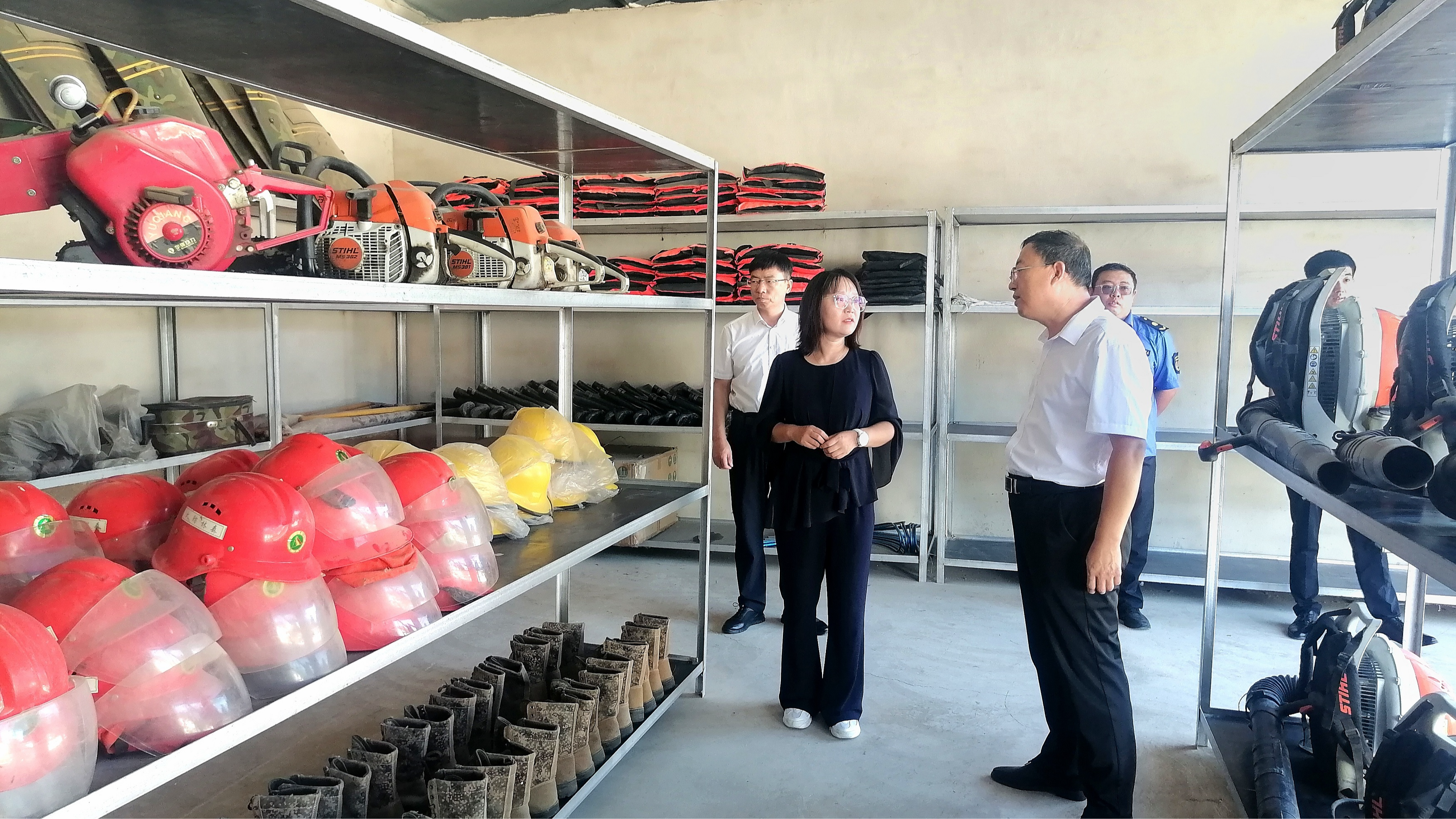 在民兵应急大队装备库,宝林佳实地查看了物资储备情况,详细询问了物资的使用管理情况以及退役军人在应急处置、抢险救灾等工作中的任务开展情况。