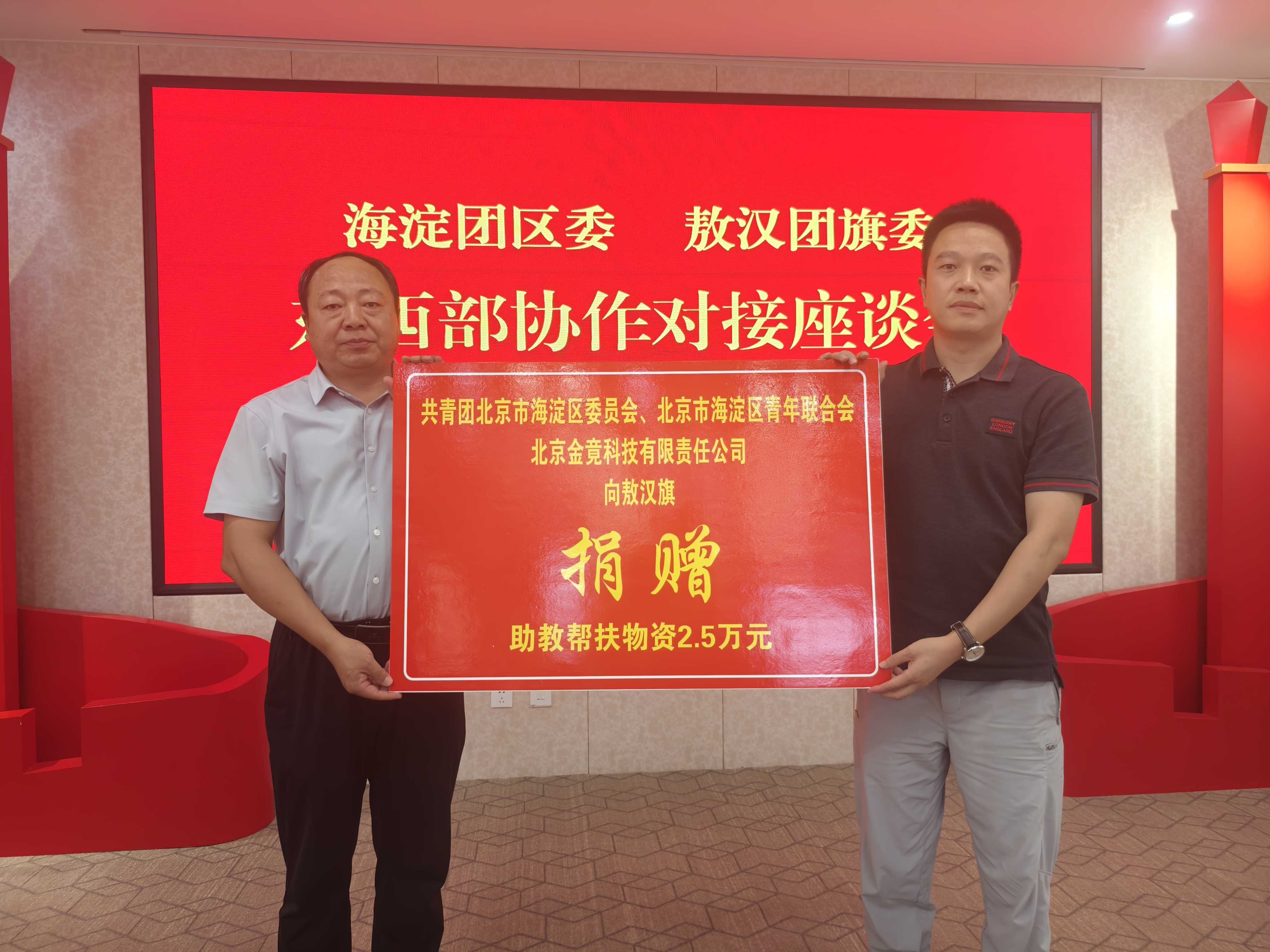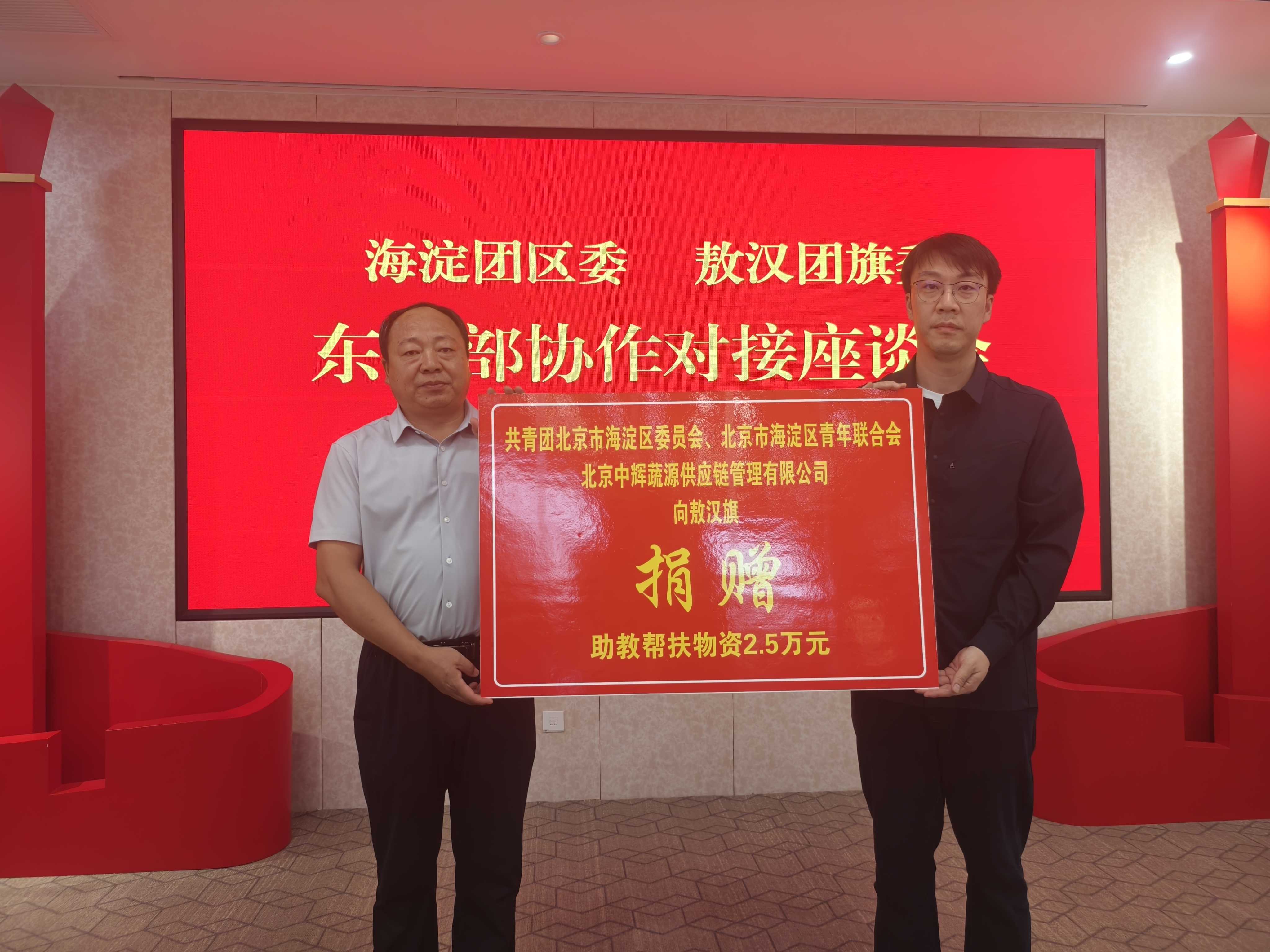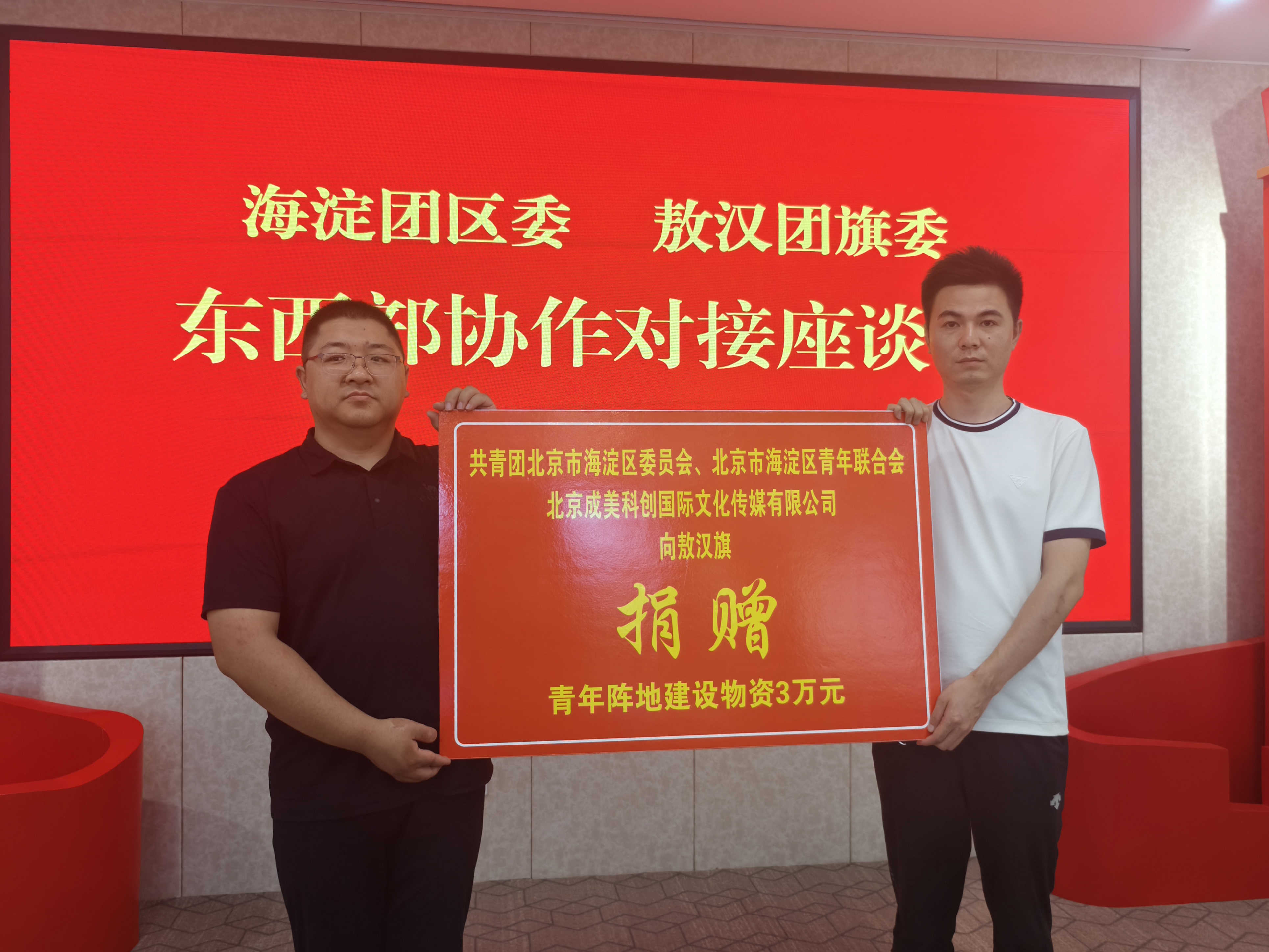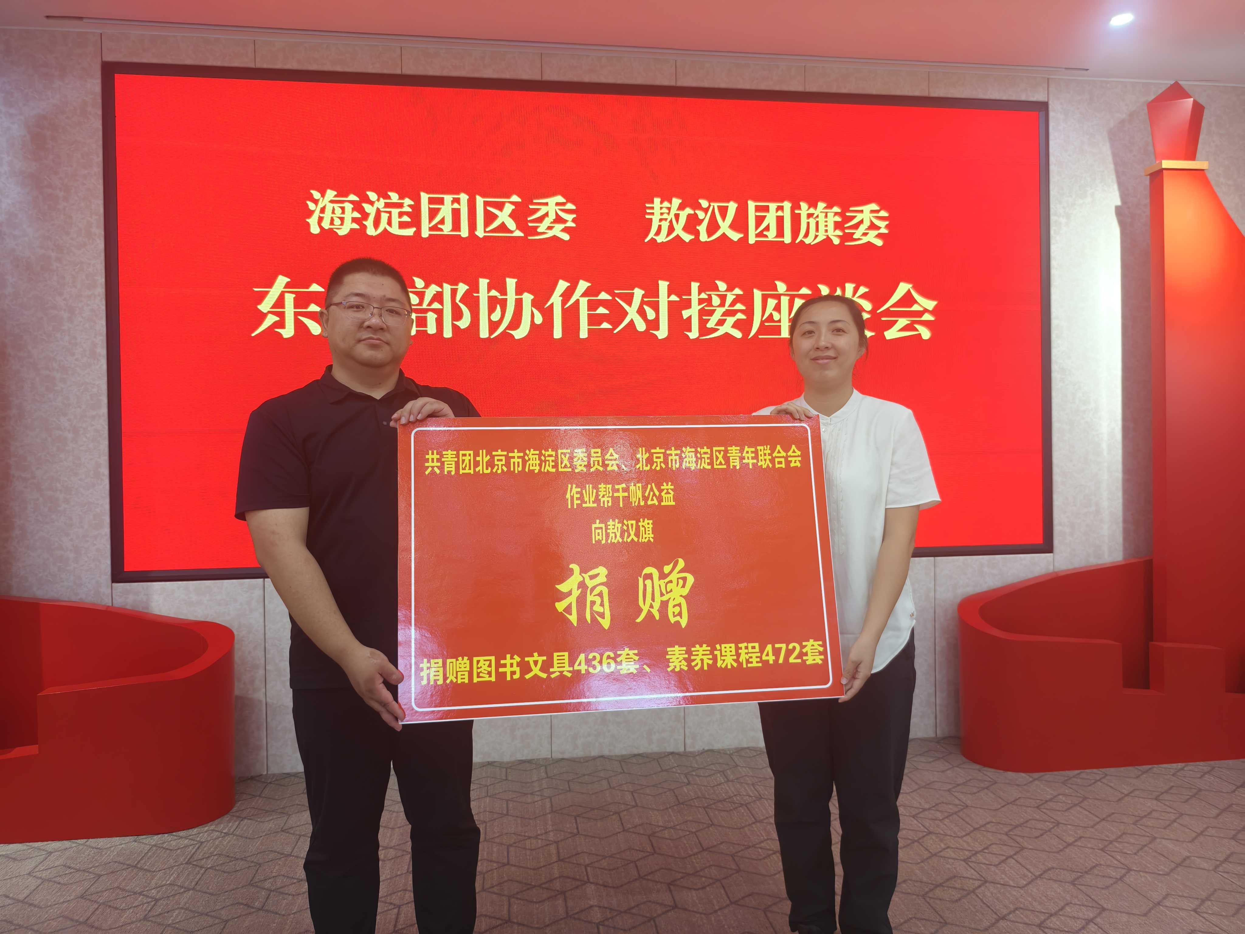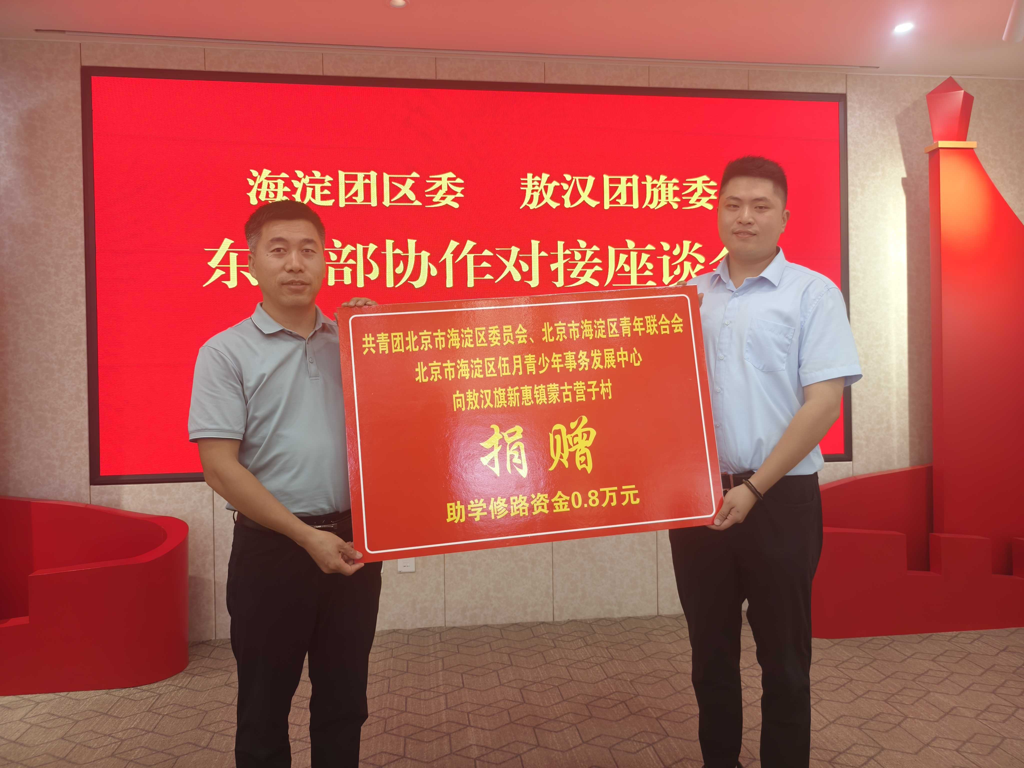 8月20日,海淀区团委和敖汉旗团委在内蒙古敖汉干部学院召开东西部协作对接座谈会并举行捐赠仪式,海淀区团委、旗团委、新惠镇、旗教育局相关负责同志出席会议。