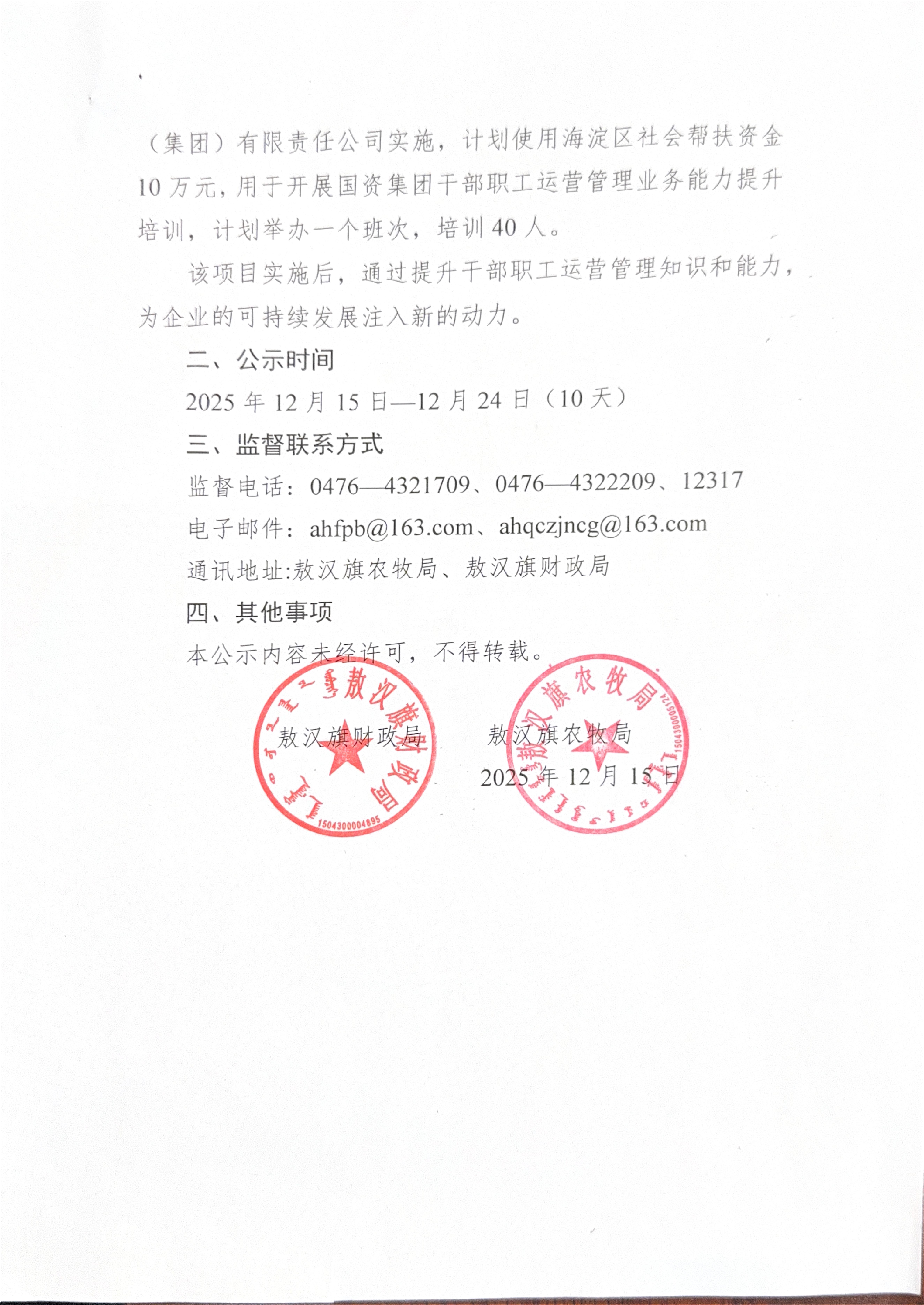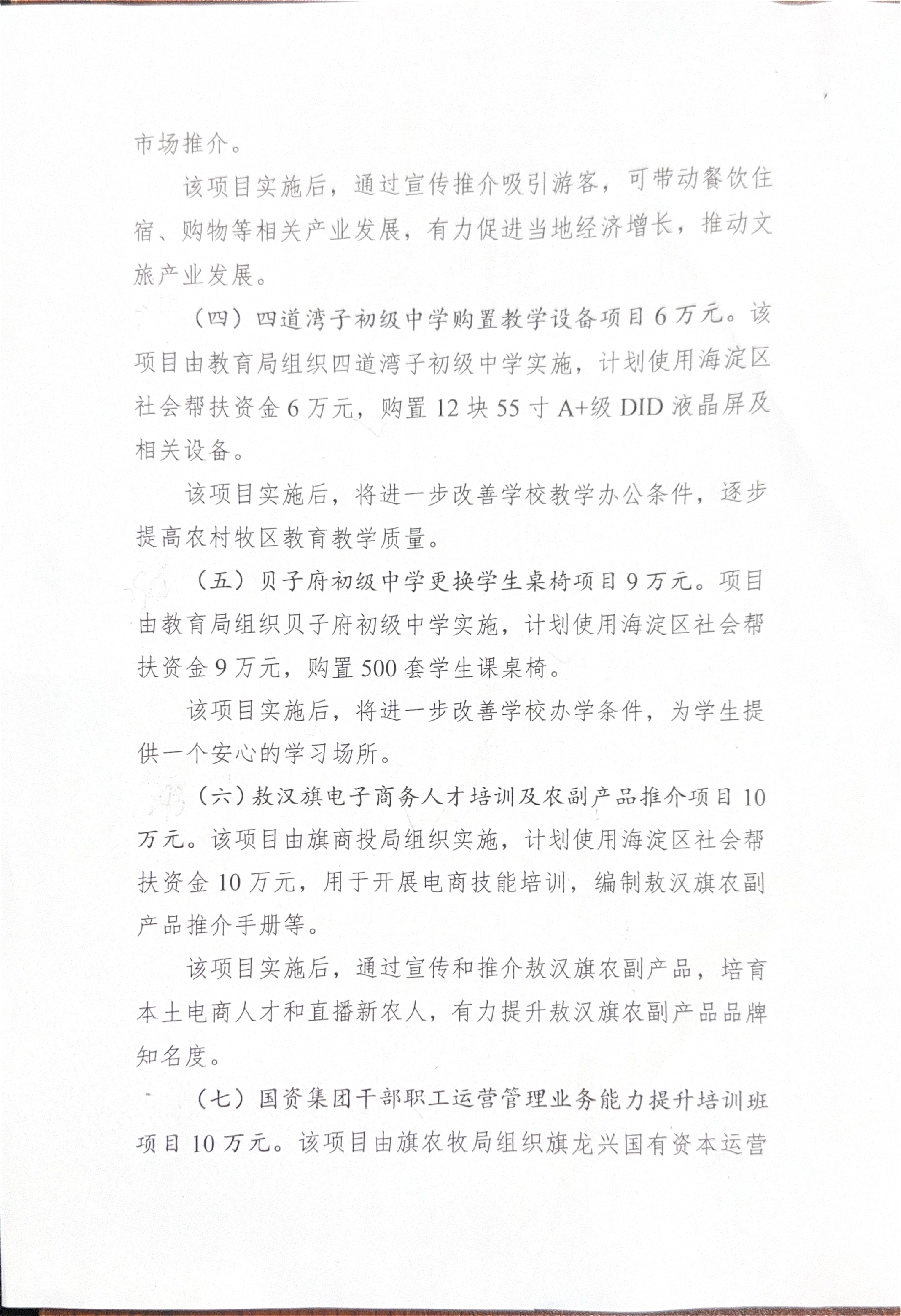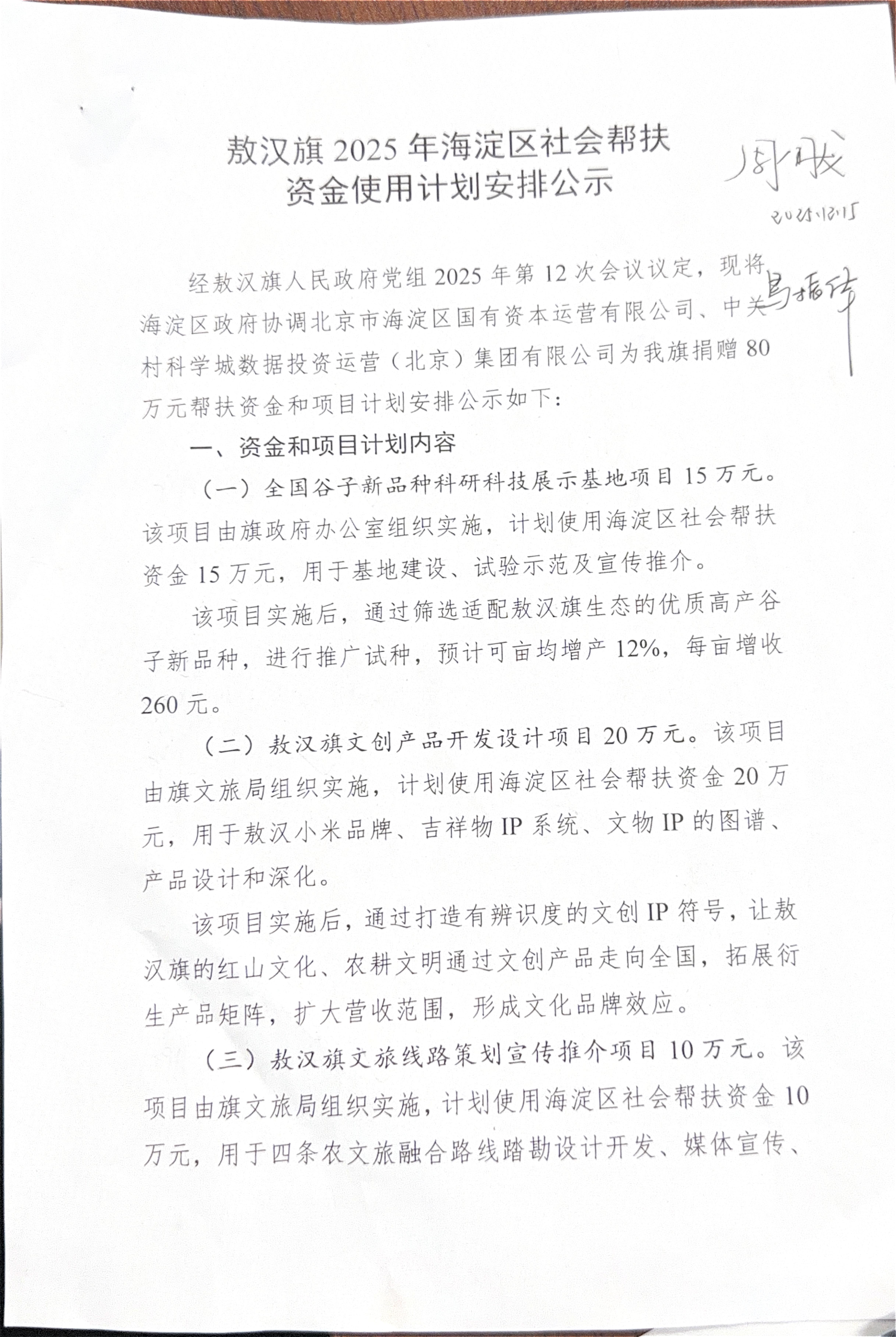 敖汉旗2025年海淀区社会帮扶资金使用计划安排公示