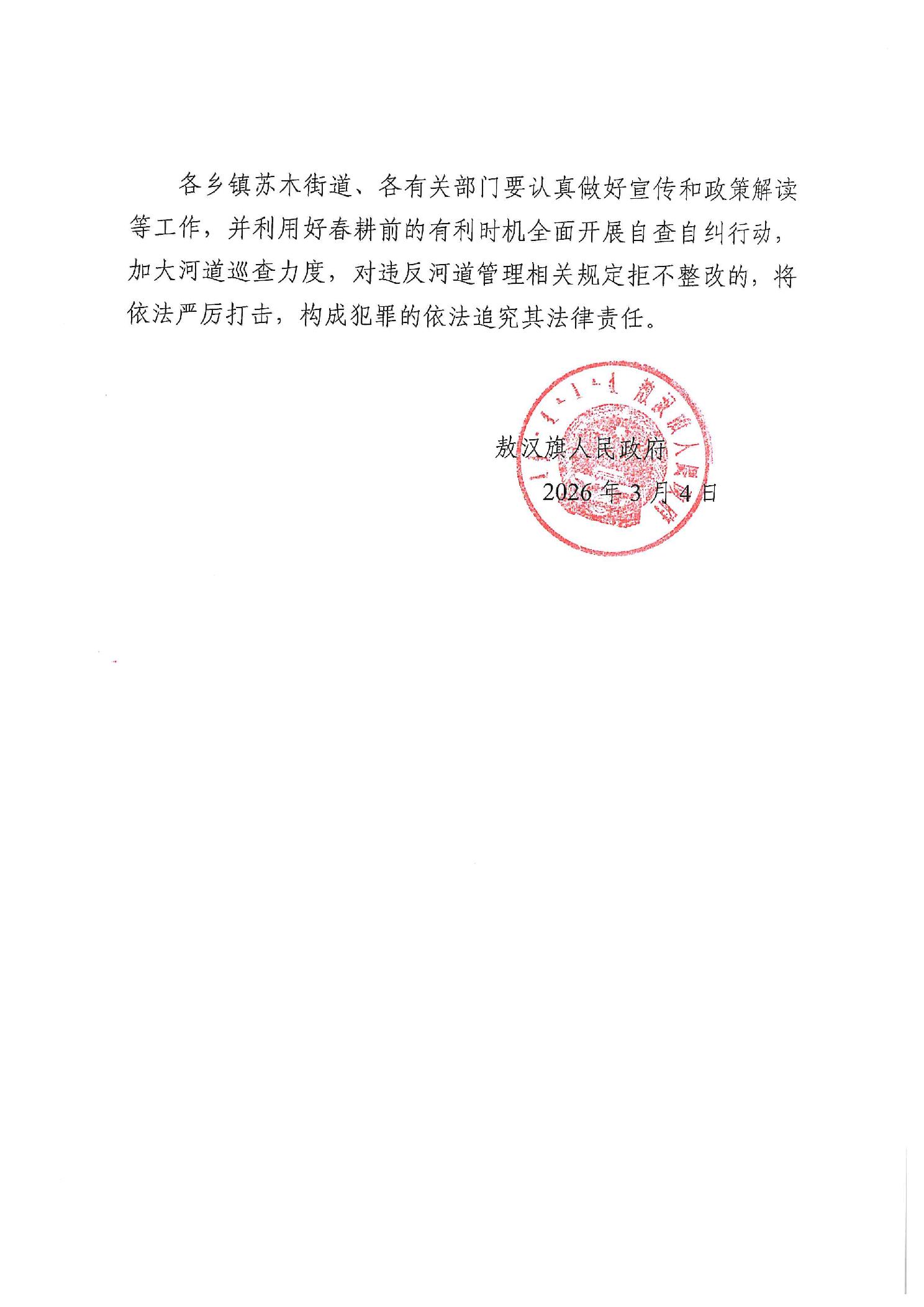 敖汉旗人民政府关于从严落实禁种管控的通告